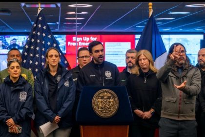 Los peatones trepan por los bancos de nieve para intentar cruzar las calles de Nueva York, el lunes 26 de enero de 2026. (FUENTE EXTERNA)