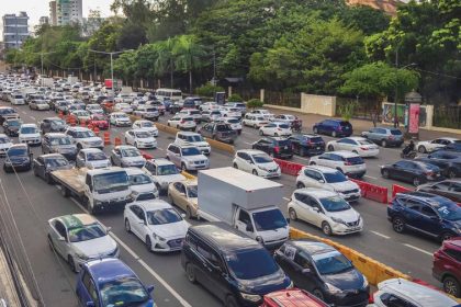 Congestionamiento en la avenida 27 de Febrero, frente al Centro Olímpico. (Fuente Externa)