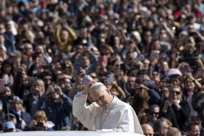 El Papa León XIV llega a su audiencia general semanal en la Plaza de San Pedro, Ciudad del Vaticano. (EFE)