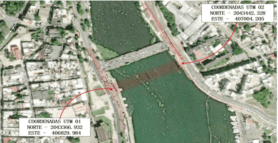 El nuevo puentebasculante (levadizo) de Santo Domingoestará ubicada a unos 80 metros al sur del puente flotante y de forma paralela. (MOPC)