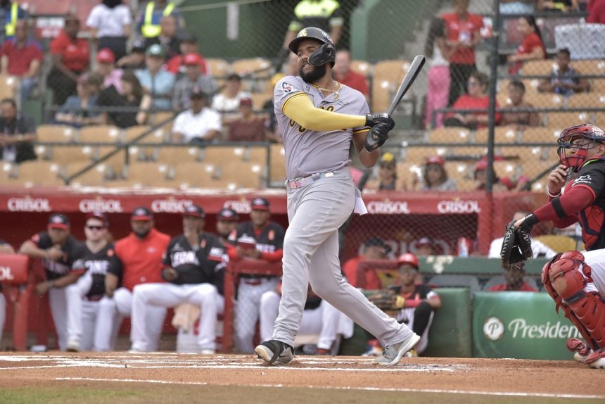 SANTO DOMINGO.- ¡Despertó la ofensiva amarilla con 13 hits!. Sonando sus bates en el primer tercio de juego, incluyendo el del importado cartagenero Harold Ramírez, que se puso presente con un cuadrangular de dos carreras, además de Geraldo Perdomo, que pegó tres sencillos, las Águilas Cibaeñas obtuvieron su primer triunfo en la semifinal de la Liga Dominicana de Béisbol versión 2024-25, tras derrotar 7-6 a los Leones del Escogido en un emocionante partido celebrado este sábado en el Estadio Quisqueya Juan Marichal.