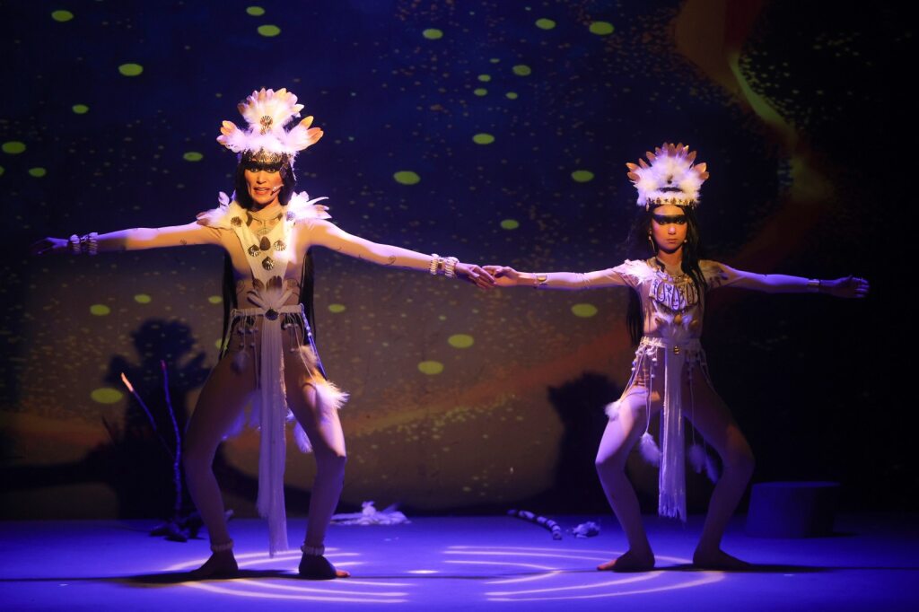 La exquisita y original pieza, presentada por Teatro Talassa y Nileny Dippton Productions, bajo la dirección de Fausto Rojas, más la producción general de Cristian Martínez y la propia Nileny, combina canciones y sonidos de instrumentos musicales indígenas.