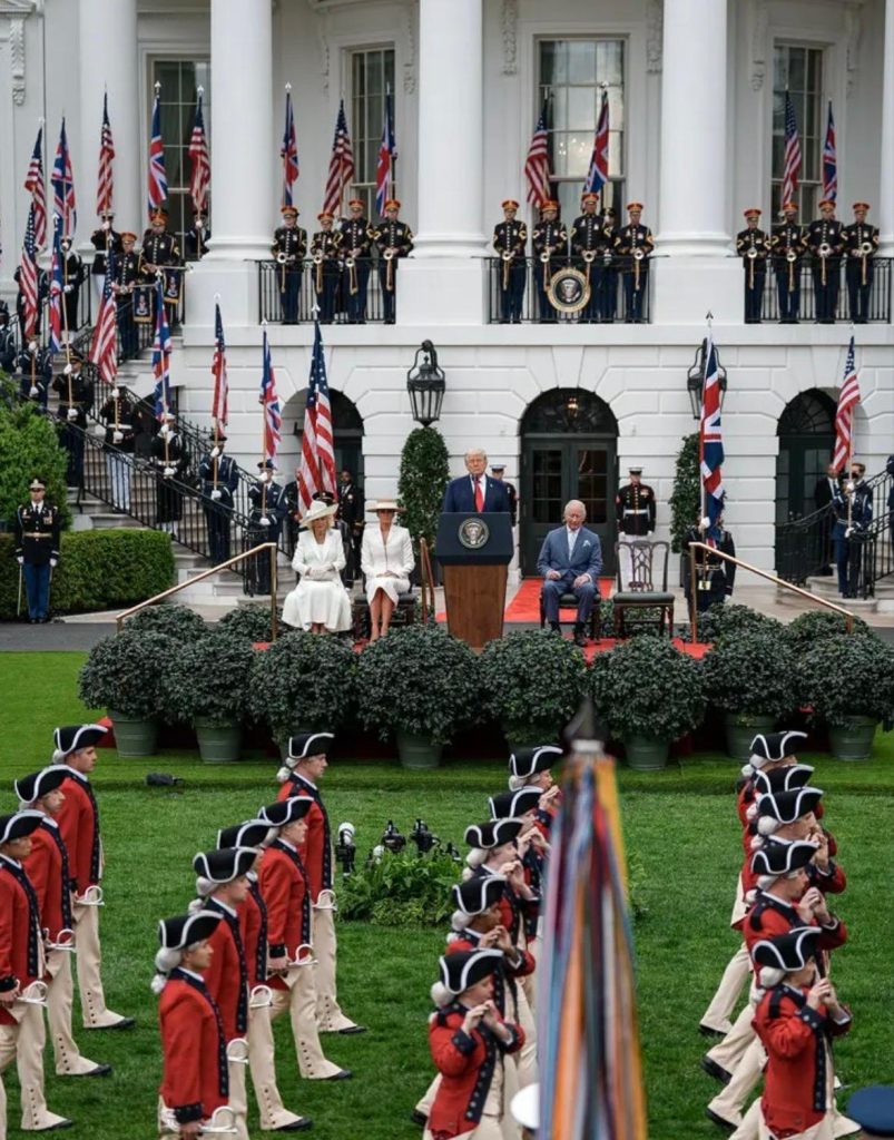 Como parte de la visita oficial, el rey participó en una ceremonia de bienvenida con todos los honores militares, incluyendo el tradicional saludo de 21 cañonazos y la revisión de tropas, considerada una de las más altas distinciones que Estados Unidos concede a un jefe de Estado visitante. Asimismo, sostuvo un encuentro privado con el presidente Trump, en el que abordaron temas de interés bilateral y reafirmaron los lazos estratégicos entre Washington y Londres.