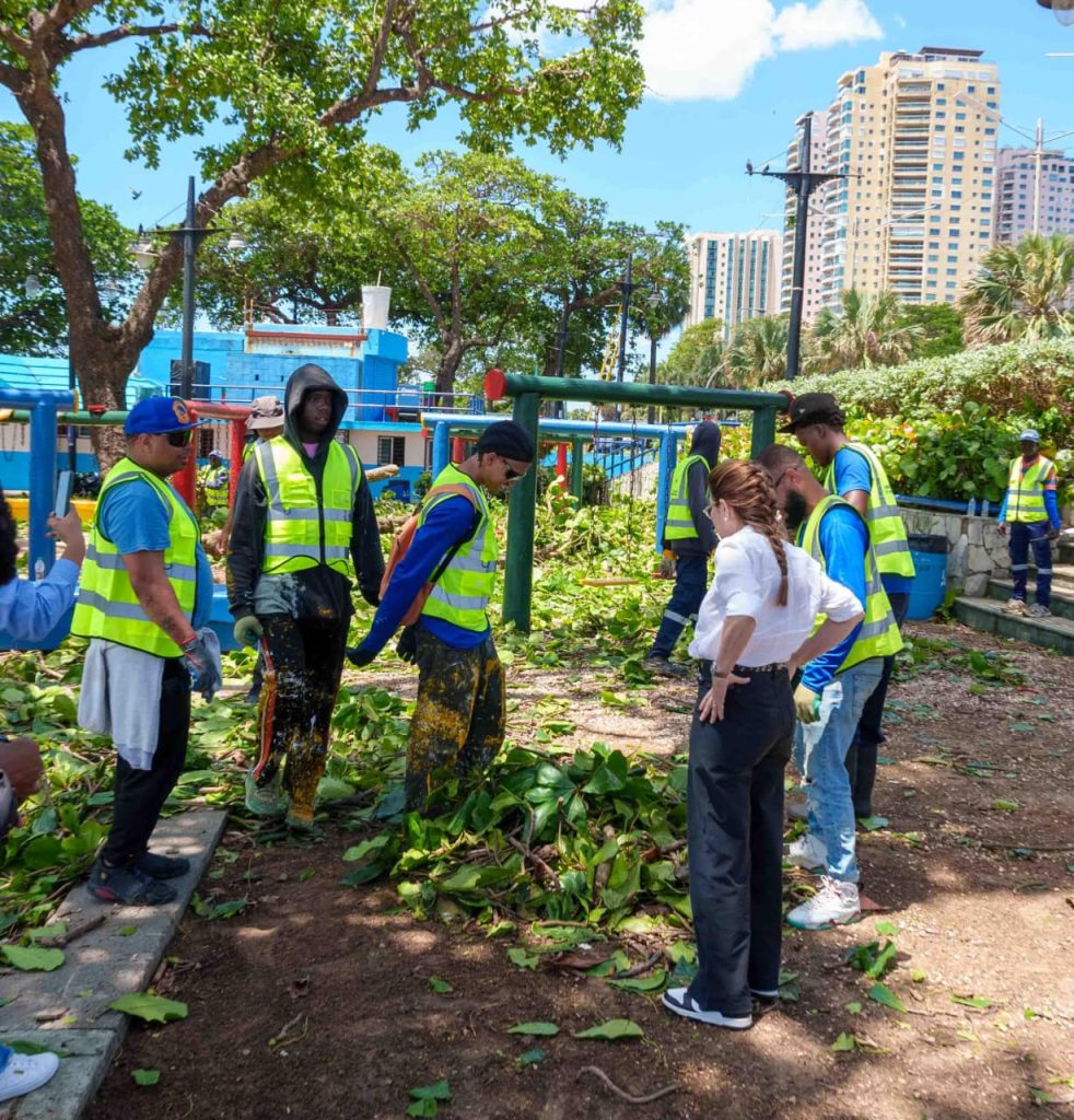 Al conversar con los medios de comunicación en Gazcue, la alcaldesa valoró el despliegue de más de 1,100 brigadistas, entre bomberos y colaboradores del cabildo, para hacer frente junto a otras instituciones a la cantidad de árboles y ramos caídos.