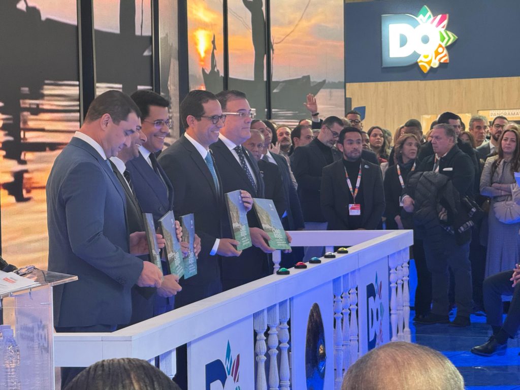 Durante la rueda de prensa realizada en FITUR 2026, el ministro Sigmund Freund entregó al ministro de Turismo y a los representantes del socio estratégico, un ejemplar de la memoria de gestión institucional del Proyecto de Desarrollo Turístico Cabo Rojo, la cual contiene la historia de ejecución del proyecto y los avances alcanzados hasta el momento.