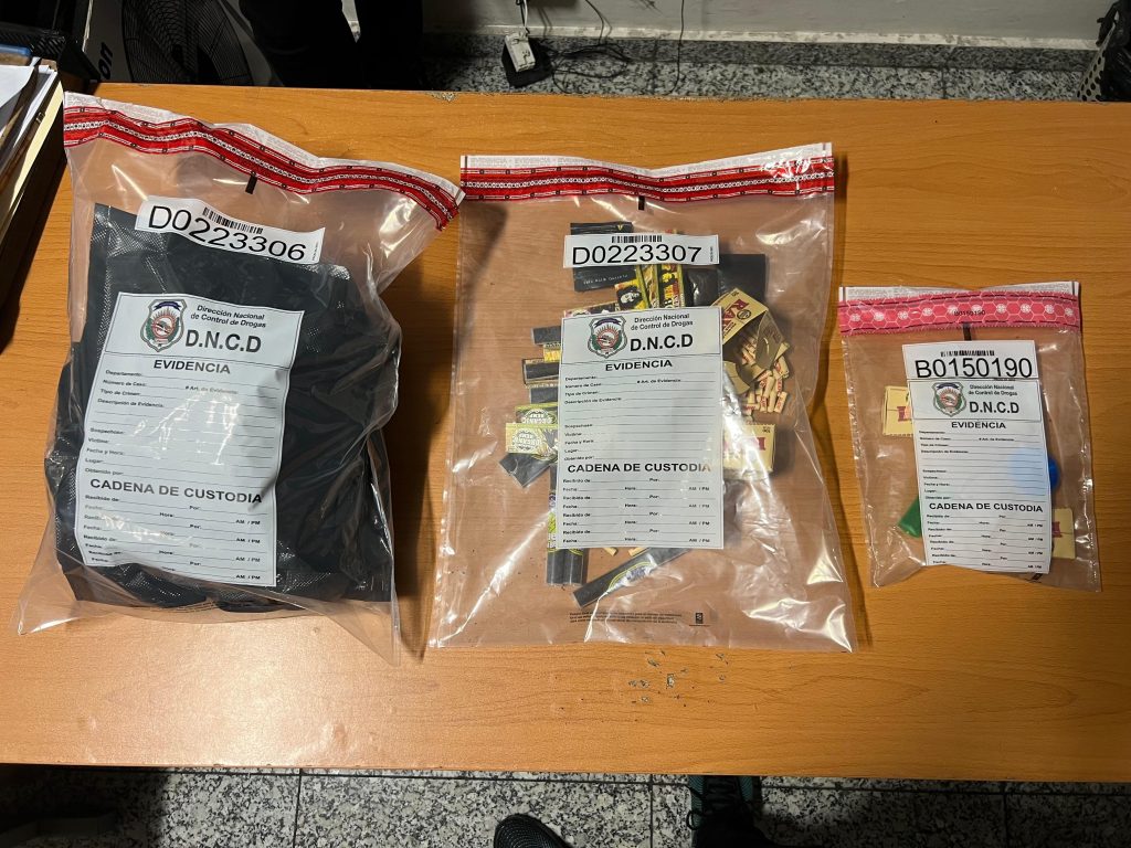 Santo Domingo.- Continuando con su misión de perseguir y castigar el narcotráfico, agentes de la Dirección Nacional de Control de Drogas (DNCD) y miembros del Cuerpo Especializado de Seguridad Aeroportuaria, (CESAC), coordinados por el Ministerio Público, incautaron tres paquetes y varias porciones presumiblemente marihuana, durante una labor de inspección realizada en el Aeropuerto Internacional de Las Américas, JFPG.