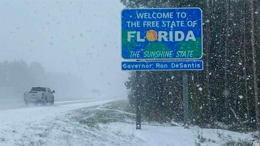 Florida vuelve a desafiar su clima tropical.-Este domingo, los residentes del noroeste del estado fueron testigos de un fenómeno meteorológico poco común: la caída de nieve. Localidades como Pensacola, DeFuniak Springs y el condado de Walton reportaron acumulaciones de hasta cinco centímetros, transformando el paisaje habitual de palmeras en una escena invernal.