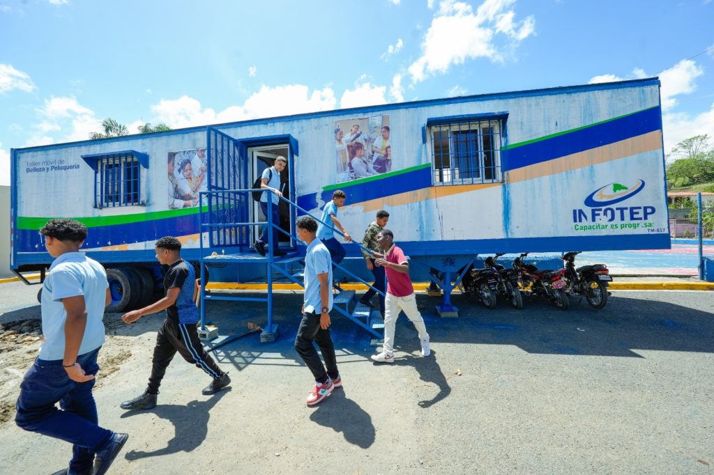 Las aulas móviles fueron recibidas con entusiasmo y optimismo, por unos 45 estudiantes del Distrito Municipal Blanco Arriba de Tenares provincia Hermanas Mirabal, quienes empezaron a recibir clases en los dos talleres móviles enviados por el Instituto Nacional de Formación Técnico Profesional (INFOTEP).