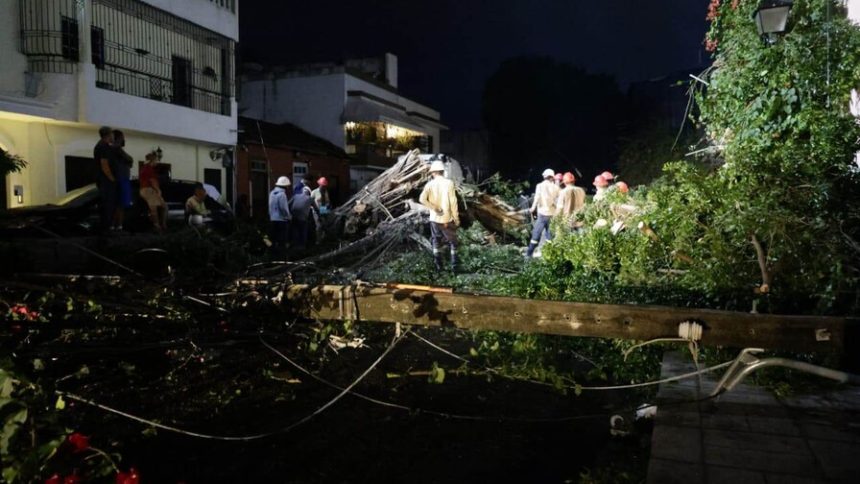 En la Zona Colonial, varios árboles fueron derribados por los vientos, impactando varios vehículos y afectando el tendido eléctrico, específicamente entre las calles Arzobispo Portes y 19 de Marzo. (Fuente…