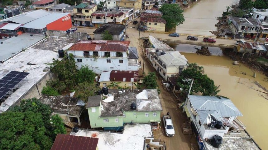 Vista aérea del río Joba tras su desbordamiento en el municipio Gaspar Hernández, provincia Espaillat, situación que activó la intervención sanitaria del Ministerio de Salud Pública en la zona. (FUENTE…