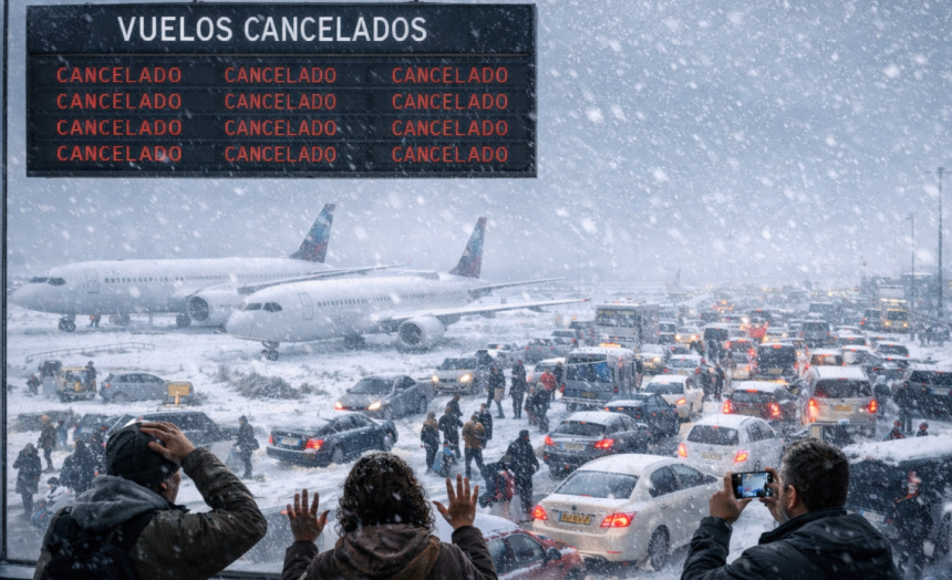 Francia: París y Nantes registran condiciones extremas. Solo en los aeropuertos de Roissy Charles de Gaulle y Orly se cancelaron más de 140 vuelos, mientras las carreteras sumaron un récord de 1,600 kilómetros de retenciones.