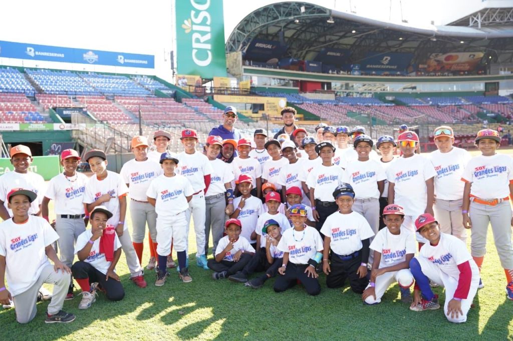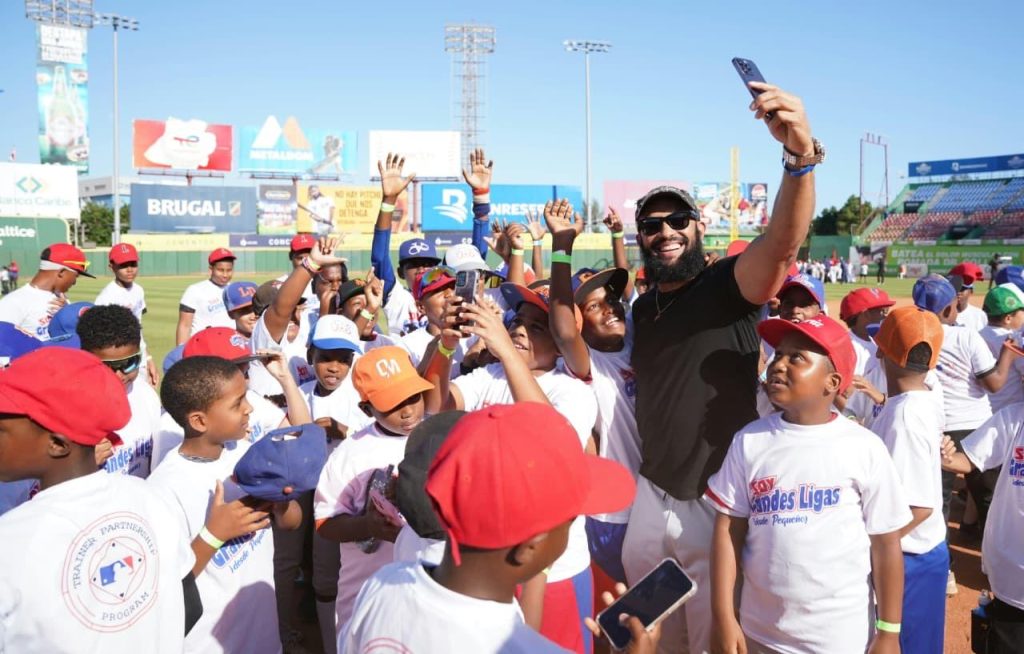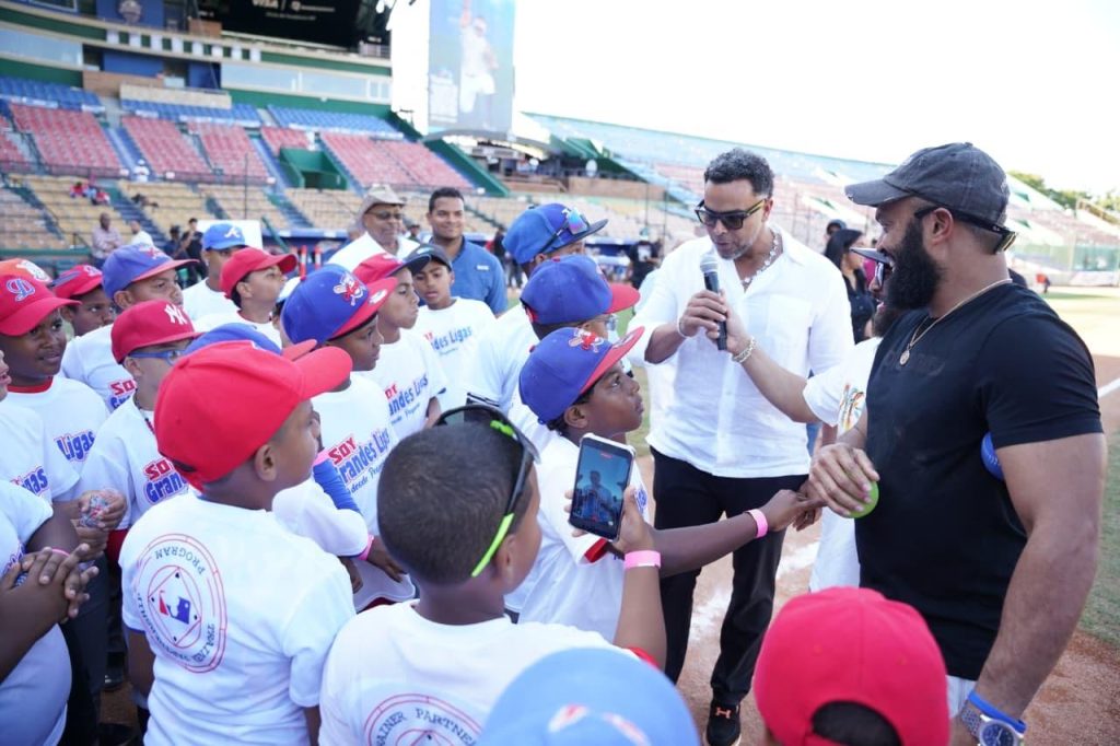 Alrededor de 300 niños participaron en la actividad, celebrada en el estadio Quisqueya Juan Marichal, donde recibieron enseñanzas técnicas y motivacionales de un destacado grupo de peloteros activos y exjugadores, en una jornada cargada de entusiasmo, aprendizaje y alegría.