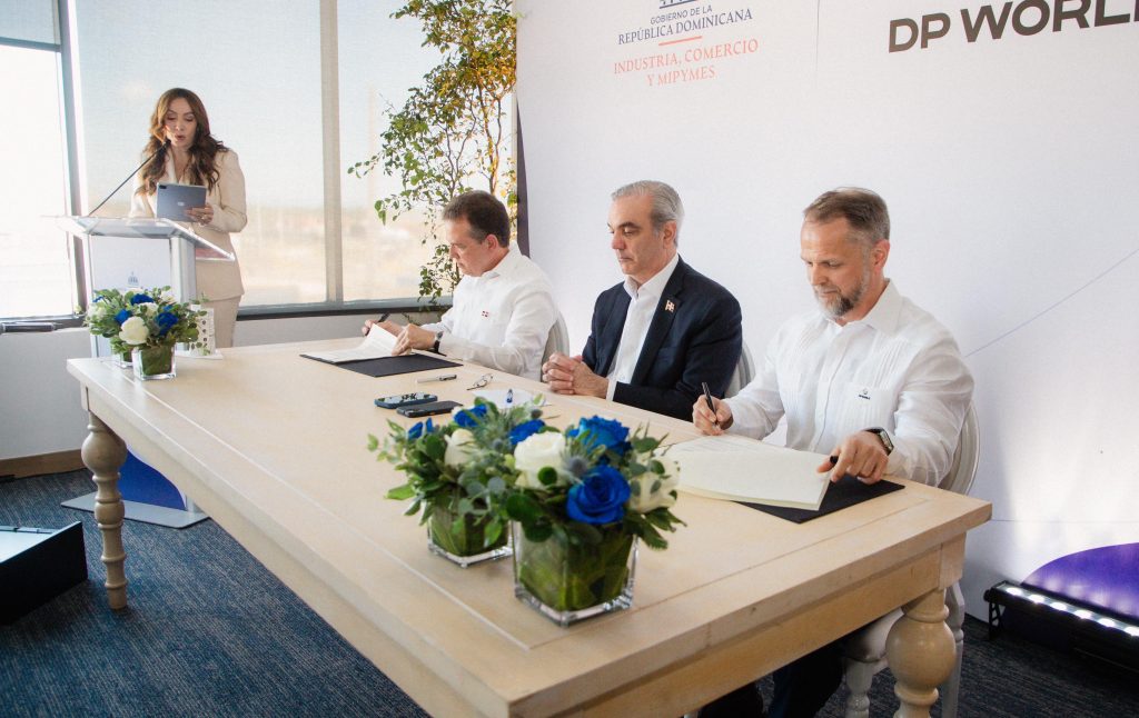 Santo Domingo. – El presidente Luis Abinader encabezó este viernes la firma del memorando de entendimiento entre el Gobierno dominicano, a través del Ministerio de Industria, Comercio y Mipymes y DP World Dominicana, con el cual la empresa de servicios logísticos presenta su intención de invertir aproximadamente US$760 millones de dólares para consolidar la expansión de su parque de zonas francas, DP World Economic Zones Dominicana y el incremento de la capacidad de su terminal portuaria ubicada en la Península de Caucedo.