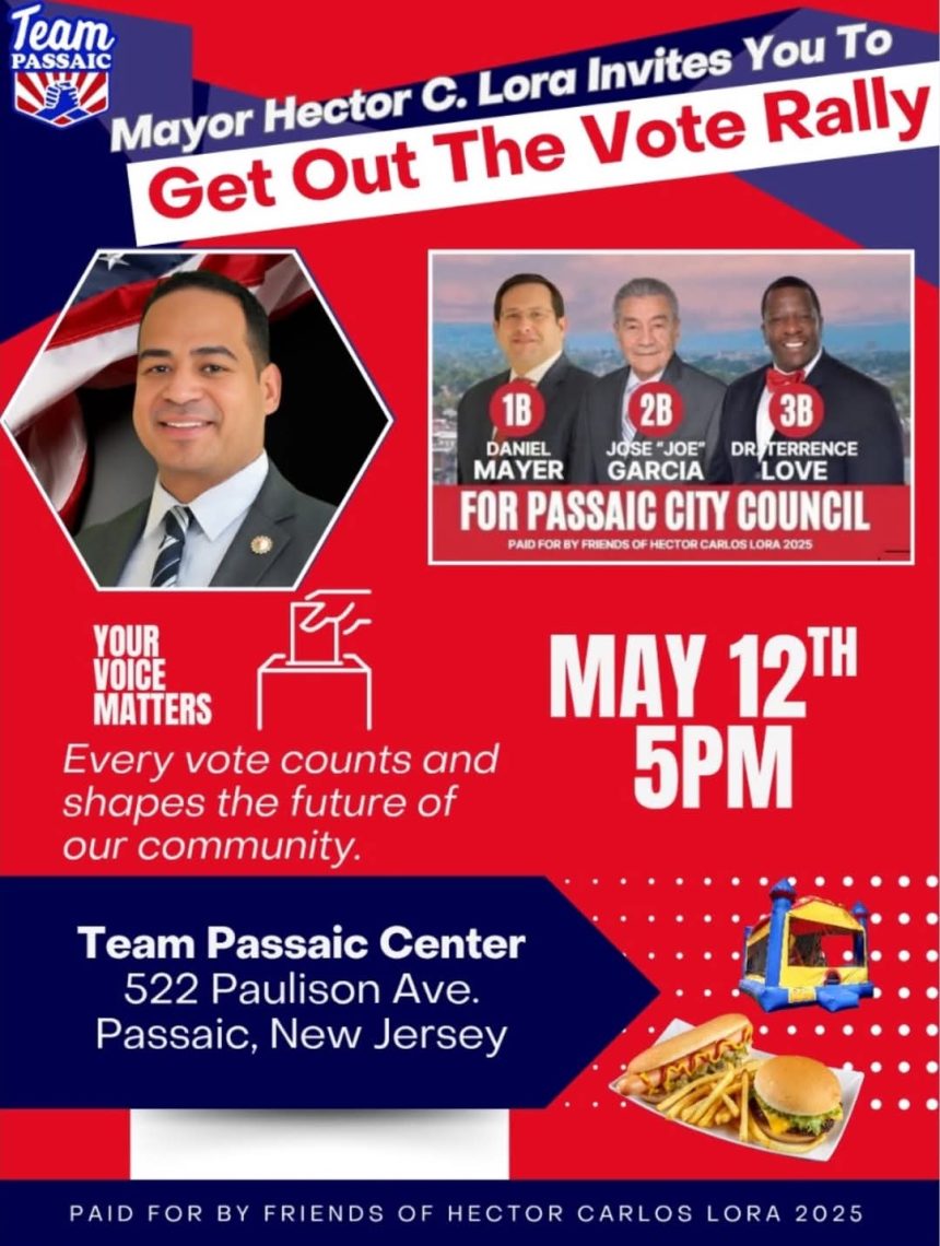 Passaic.- El alcalde Hector C. Lora hace un llamado especial a cada vecino: ¡Que nadie se quede en casa! Los espera con los brazos abiertos para compartir una tarde llena de alegría, unión y entusiasmo, como siempre pensando en su gente.