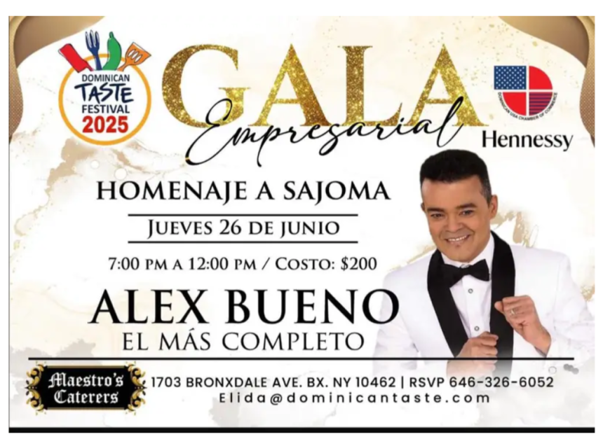 Bronx, NY – El espíritu de la cultura dominicana, su sabor, su música y su fuerza empresarial se unirán en una sola noche mágica este jueves 26 de junio, cuando la empresaria y líder comunitaria Elida Almonte presente la Gran Gala Empresarial del Dominican Taste Festival 2025, la esperada celebración tendrá lugar en el icónico Maestro’s Caterers, ubicado en el Bronx, desde las 7:00 p.m. hasta la medianoche.