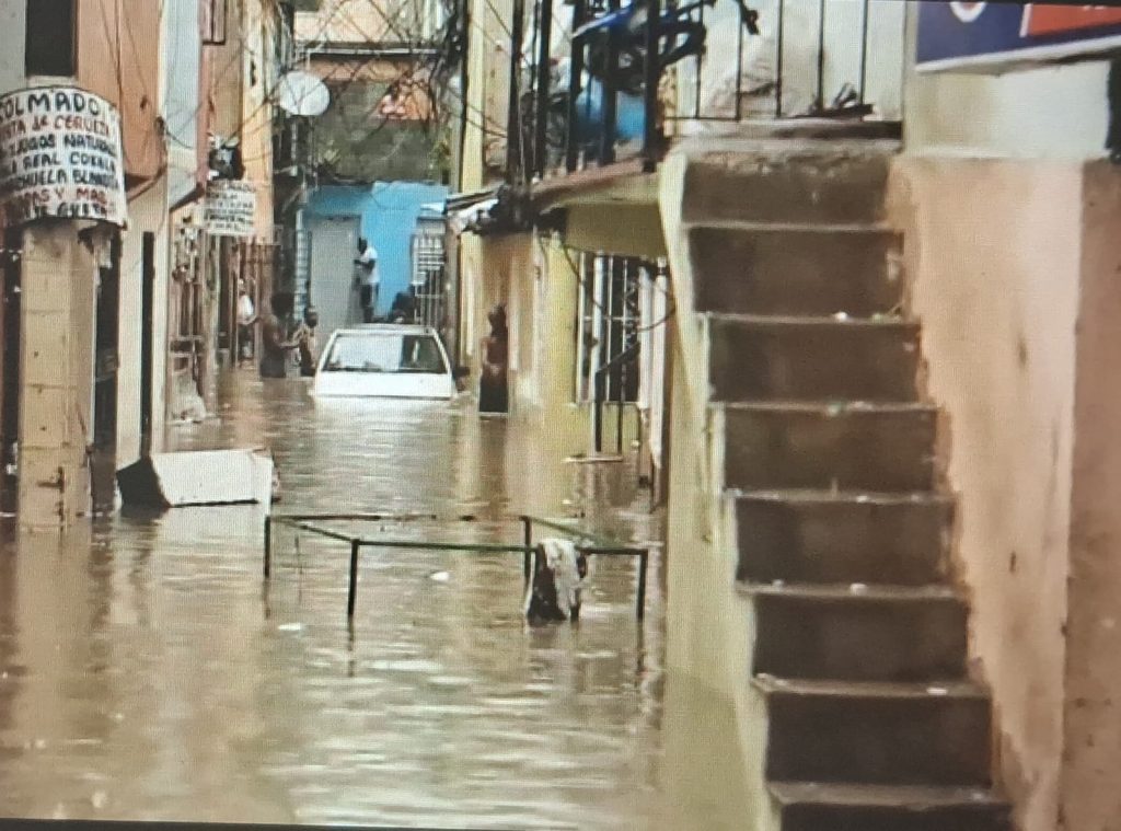 Inundaciones urbanas registradas este miércoles 8 de abril de 2026 en Arroyo Bonito de Manoguayabo, Santo DOmingo Oeste. (Fuente externa)