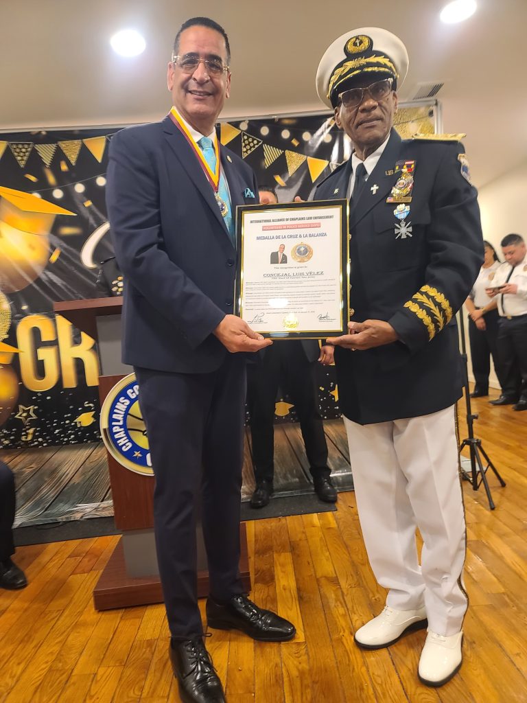 Uno de los momentos más emotivos del acto fue la entrega de la prestigiosa “Medalla de la Cruz & la Balanza” al Concejal Luis Vélez, en reconocimiento a su liderazgo y compromiso con la justicia social y el servicio comunitario.
