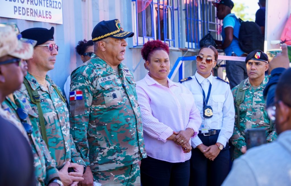 PEDERNALES.- El director general de Migración Vicealmirante Luis Rafael Lee Ballester, ARD., acompañado por autoridades civiles y militares, con responsabilidades en las provincias fronterizas de Pedernales a Dajabón, inició el año 2026 con un recorrido de supervisión de los controles migratorios, en especial donde se desarrollan los mercados binacionales, con el propósito de dar seguimiento a las operaciones de la institución en la zona fronteriza terrestre y marítima, asi como identificar las principales necesidades de acceso y control, para garantizar la biometrización del flujo de personas que entran y salen del país.