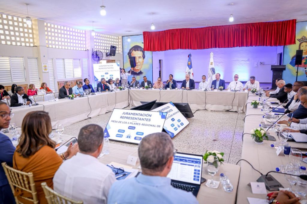 Santiago.-El ministro de Educación, Luis Miguel De Camps, encabezó este jueves la instalación y juramentación de la Mesa de los Cinco Pilares  en la Regional 08, correspondiente a la provincia Santiago, escenario en el que fue presentada la “Estrategia provincial para la mejora del clima y convivencia escolar”, durante un acto celebrado en el Instituto Politécnico Industrial de Santiago (IPISA).