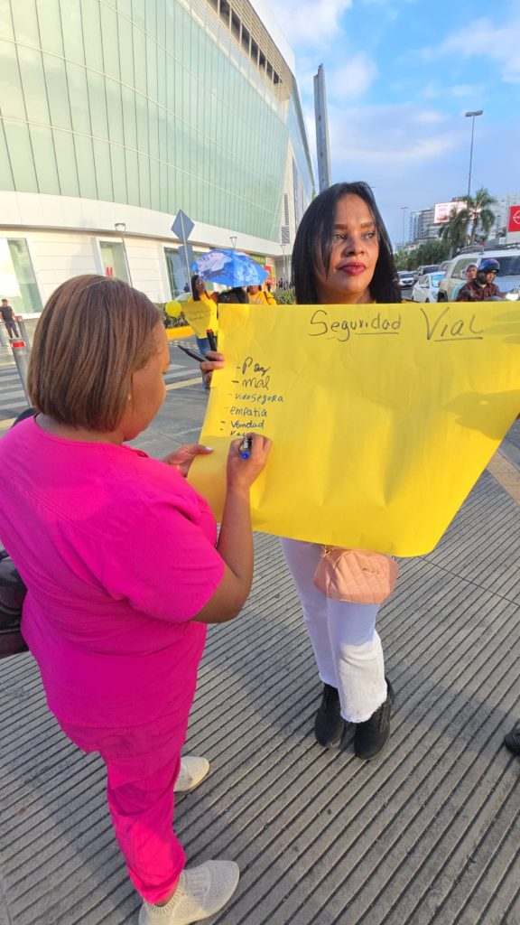 Santo Domingo, República Dominicana. – Con el objetivo de promover la conciencia ciudadana sobre la importancia del respeto a las normas de tránsito y la protección de la vida en las vías públicas, la organización Mujeres en la Vía realizó una Campaña de Sensibilización por la Educación Vial “Salvemos vidas Juntos”.