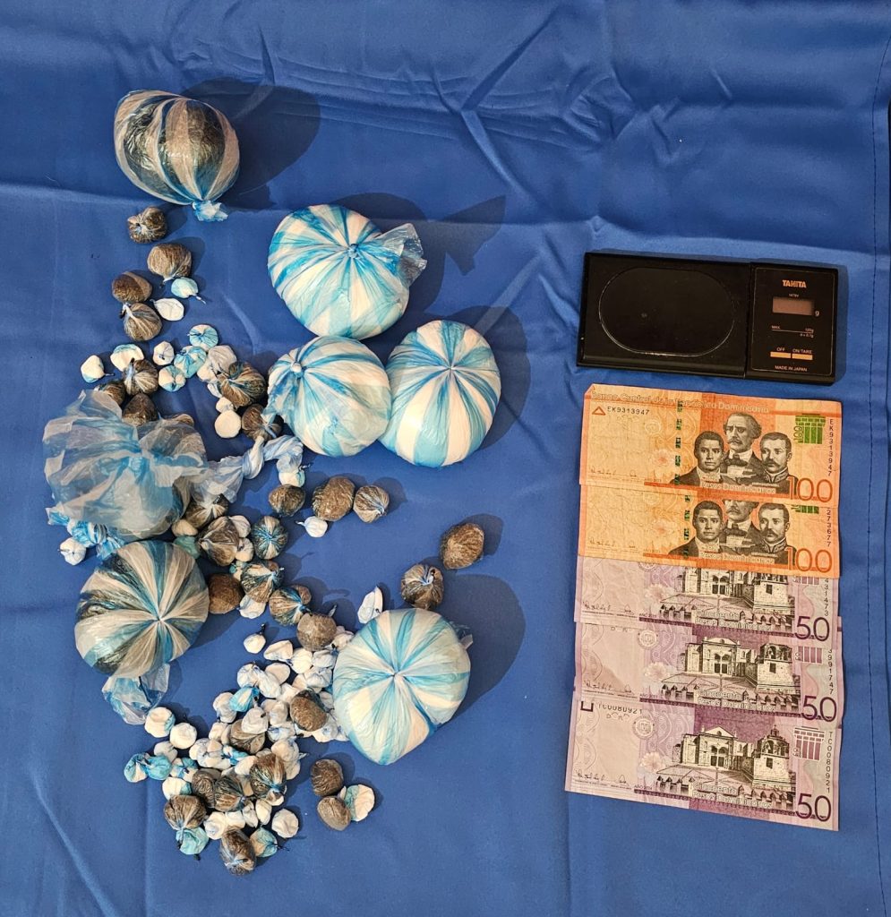 Durante el enfrentamiento, los individuos escaparon de la escena y dejaron abandonadas en el área un total de 86 porciones presumiblemente cocaína, con un peso aproximado de 1,029 gramos, 36 porciones de un vegetal presuntamente marihuana, con un peso de 280 gramos, una balanza y la suma de RD$350.00 pesos dominicanos.