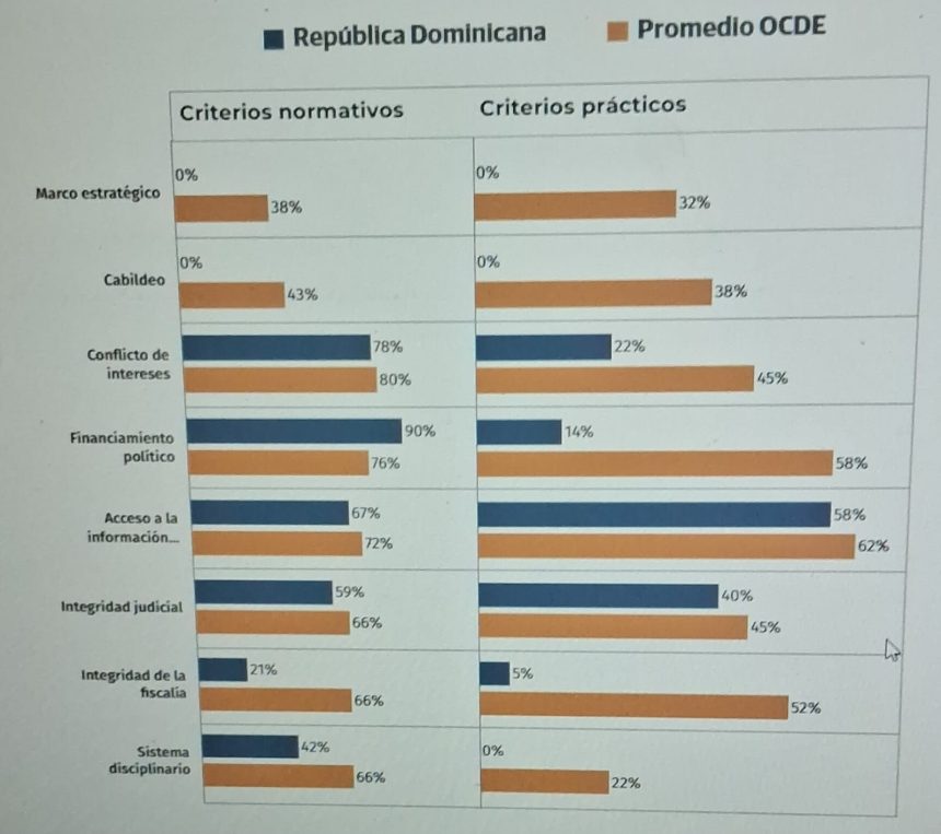 SANTO DOMINGO. La República Dominicana enfrenta un diagnóstico agridulce en materia de transparencia. Según el reciente informe «Perspectivas de anticorrupción e integridad 2026» de la OCDE, el país posee un robusto andamiaje legal, pero falla drásticamente al momento de aplicar las reglas, especialmente en el financiamiento de los partidos y la integridad de la fiscalía.