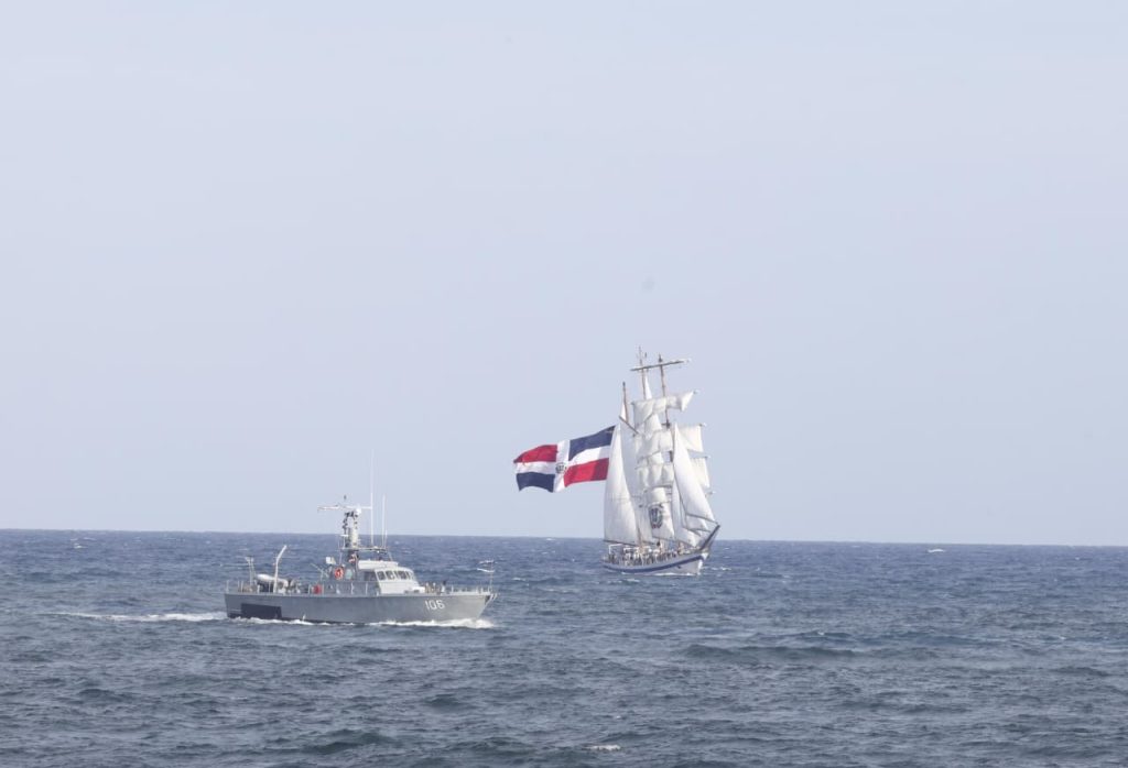 Dominio del Cielo y el Mar: Mientras las naves aéreas realizaban maniobras de precisión, la Armada de la República Dominicana custodiaba el litoral, ofreciendo una estampa majestuosa del poder naval dominicano.