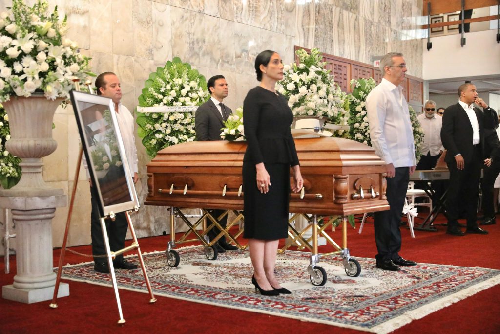 El presidente Abinader rindió guardia de honor ante el ataúd de este ícono de la cultura dominicana junto a la primera dama, Raquel Arbaje y los ministros de Cultura, Roberto Ángel Salcedo y de la Presidencia, José Ignacio Paliza.