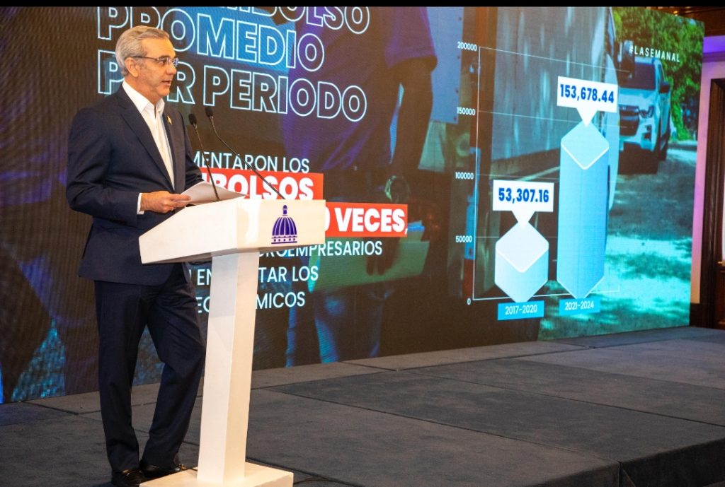 Santo Domingo. – El presidente Luis Abinader destacó este lunes que el sector de micro, pequeñas y medianas empresas (Promipymes) se ha fortalecido con el incremento de su cartera de crédito en más de RD$ 4 mil millones y ha triplicado su desembolso de préstamos en los últimos cuatro años.