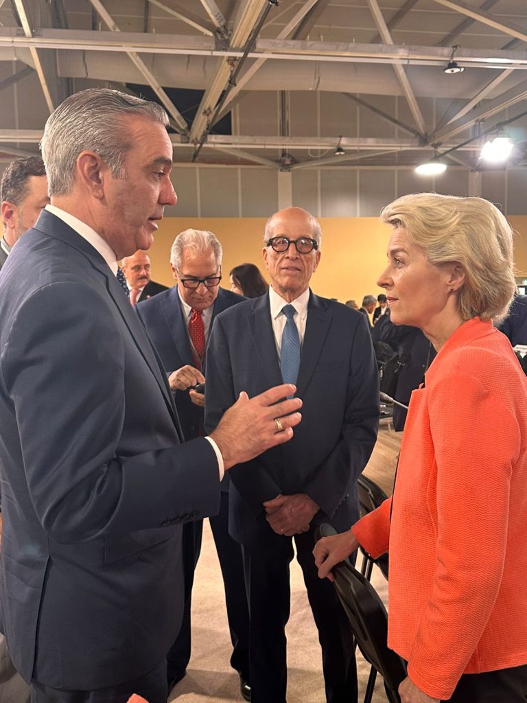 Entre las personalidades con la cual conversó el mandatario dominicano, estuvo Ursula Gertrud, presidenta de la Unión Europea.