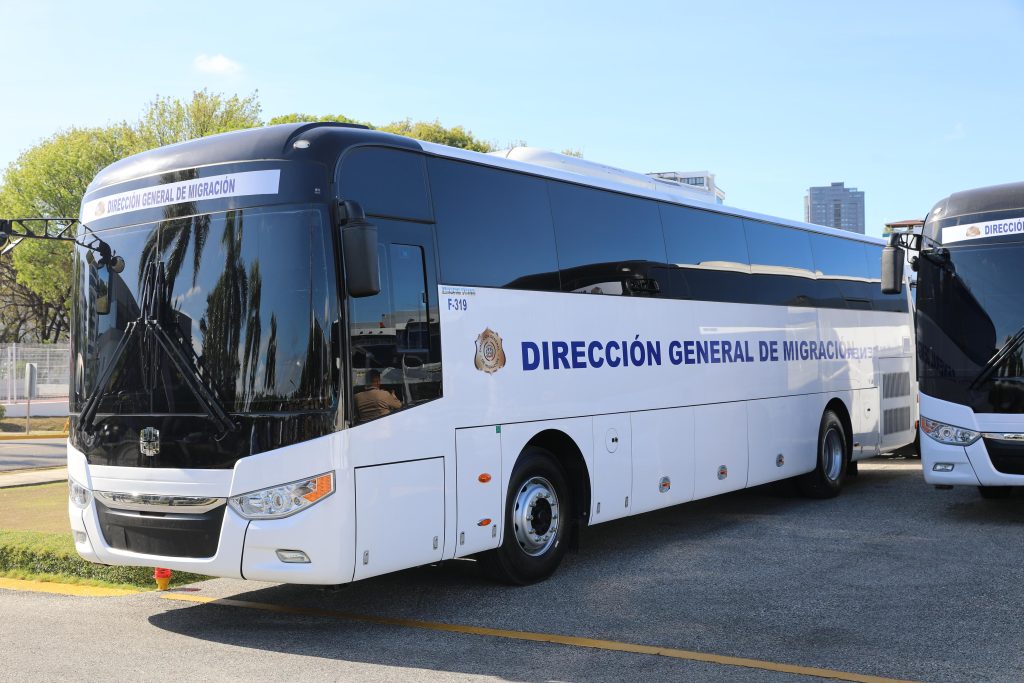 Los nuevos medios de transporte para el traslado de interdictos que disponen de aire acondicionado y baños integrados para las mujeres, embarazadas y niños, con capacidad para 50 pasajeros, fueron entregados en el Ministerio de Defensa con una inversión que asciende a los RD$510,581,136.00.