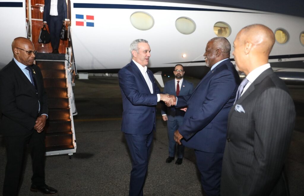 República Cooperativa de Guyana- El presidente Luis Abinader llegó a la República Cooperativa de Guyana a las 6:25 de la tarde por el Aeropuerto Eugene F. Correia de Georgetown, Guyana.