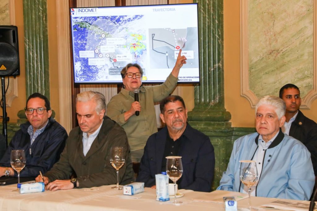 La directora del Instituto Dominicano de Meteorología (INDOMET), Gloria Ceballos, reafirmó que la tormenta se está desplazando hacia el norte y se proyecta que realice un giro hacia el oeste acercándose más a la península de Haití, por lo que su campo nuboso podría acercarse más al litoral sur del país.