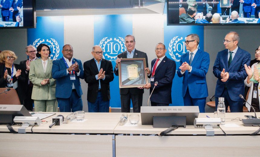 Ginebra, Suiza.- El presidente Luis Abinader recibió esta mañana un reconocimiento en el marco de la 113 Conferencia Internacional de la Organización Internacional del Trabajo (OIT), con la presencia de las centrales sindicales dominicanas y organizaciones internacionales que agrupan a más de 180 millones de trabajadores en el mundo.