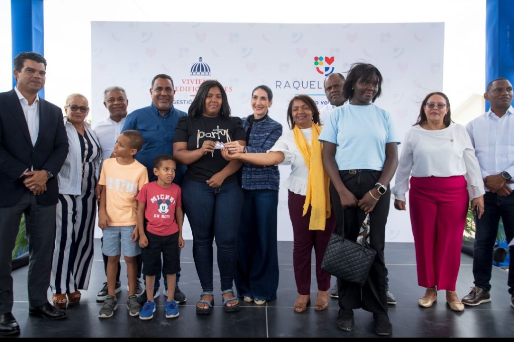Las Matas de Farfán, San Juan. – La Primera Dama, Raquel Arbaje, junto al Ministerio de Vivienda y Edificaciones (MIVED), entregó este martes un total de nueve viviendas a igual número de familias en el municipio de Las Matas de Farfán, en la provincia San Juan.