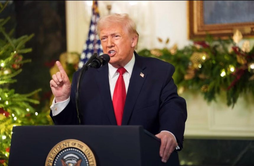 “Estados Unidos vuelve a ser respetado como nunca antes”, dijo, antes de desear a la nación Feliz Navidad y Próspero Año Nuevo.