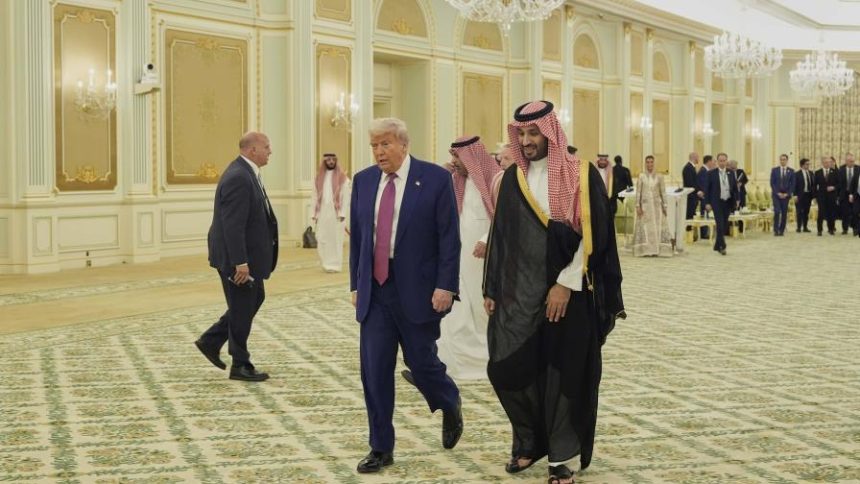 La realeza saudí y los multimillonarios estadounidenses estuvieron en primera fila para un discurso en Riad en el que el presidente Donald Trump condenó lo que él llamó la interferencia pasada de Estados Unidos en los ricos Estados del Golfo Pérsico.