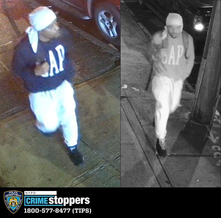 La policía compartió un video inquietante del ataque nocturno del 1 de mayo el jueves por la noche con la esperanza de atrapar al responsable. Muestra a un hombre siguiendo a una mujer cerca de East 152nd Street y Third Avenue en Melrose después de conversar con ella. Él camina detrás.